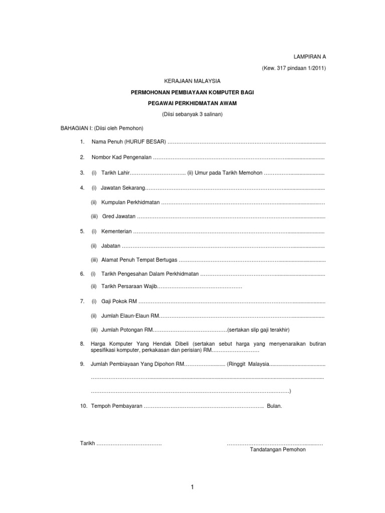 Permohonan Pinjaman Komputer Kew 317 Pindaan 1 2011