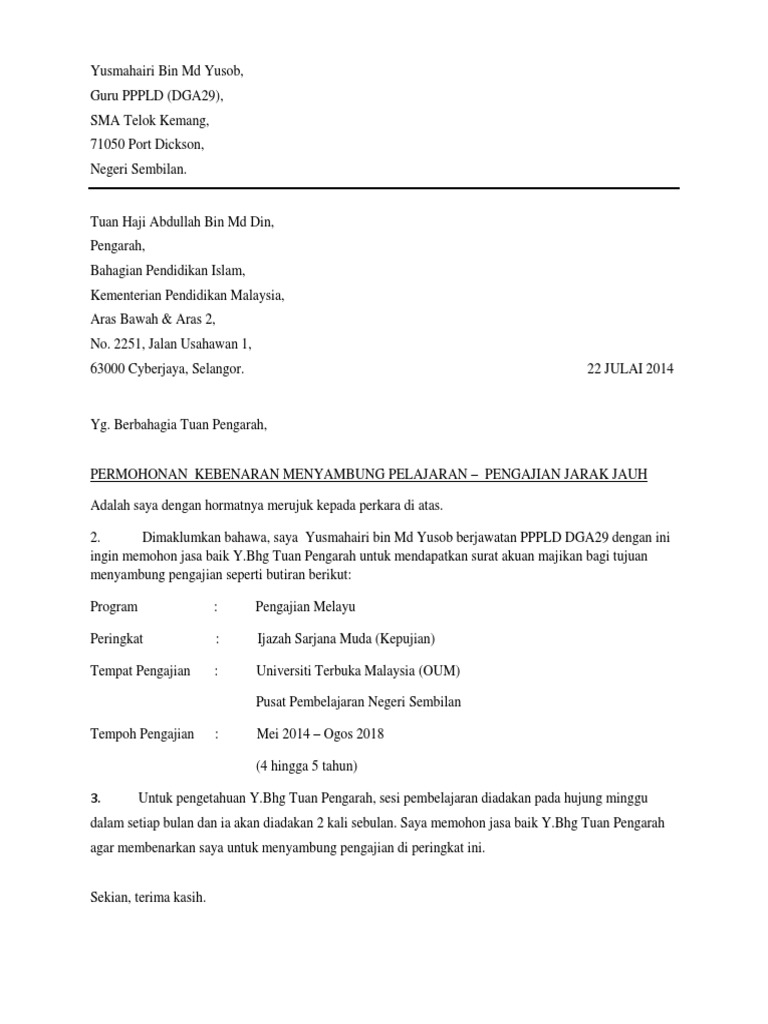 Borang permohonan tersebut adalah seperti berikut- i. Semasa Mengisi Borang Permohonan. Format contoh surat resign sambung belajar yang baik dan benar 2019.