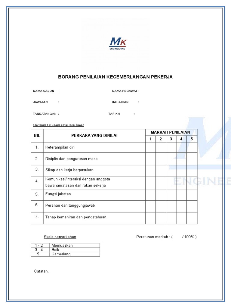 Contoh surat tawaran kerja 1. 7302019 Contoh Borang Penilaian Pekerja.